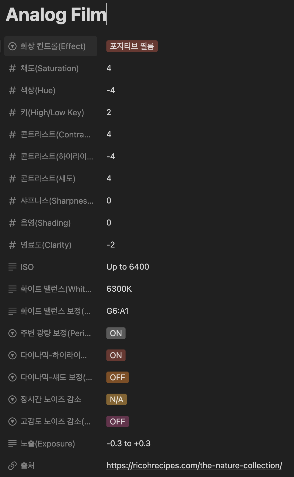 원래 포지티브 필름(Positive Film) 효과만 써왔는데,