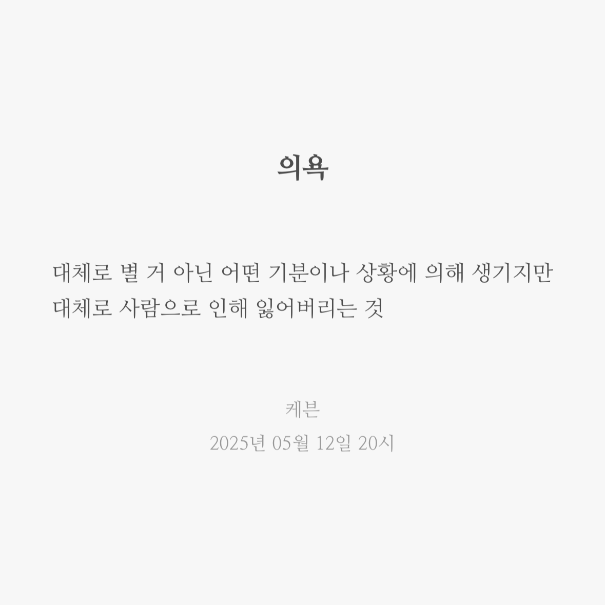 의욕 2025. 5. 12. 21:00 케븐 씀 반응형 반응형 공유하기 게시글 관리 DRUNKEN KEVIN '씀' 카테고리의 다른 글 혼돈 (0) 2025.12.24 아침마다 (0) 2025.12.09 텅 빈 (0) 2024.04.09 행복한 기억 (0) 2024.02.01 한참을 (2) 2023.06.06